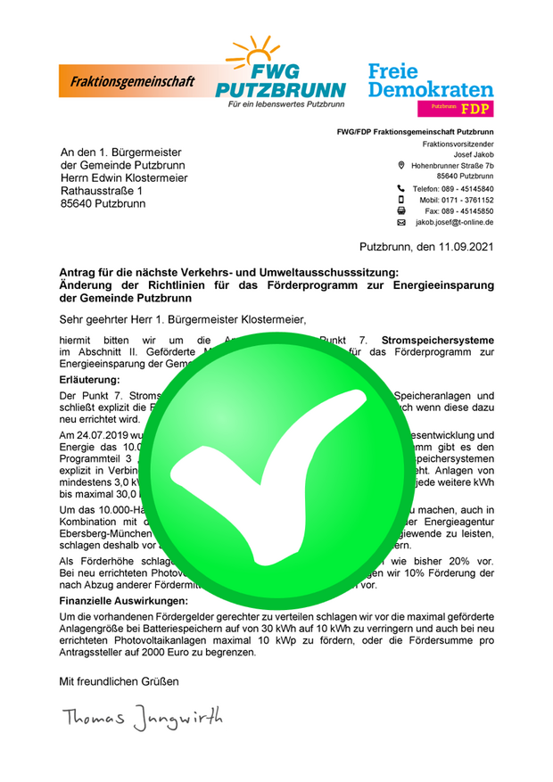 Am 29.03.2022 wurde im Gemeinderat basierend auf meinem Antrag beschlossen zukünftig auch PV-Dachanlagen für Hauseigentümer zu fördern.
